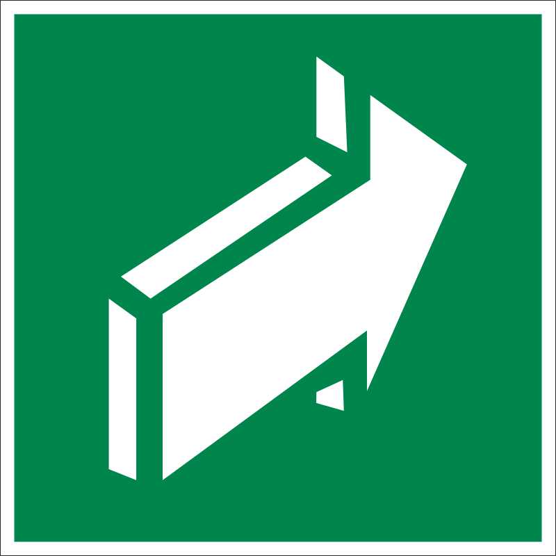 «Открывать движением от себя» входит в число эвакуационных знаков. Данный знак указывает способ открывания двери в здании во время пожара или иной опасной ситуации, предотвращая жертвы в общественных местах. Используется для указания направления, в котором следует открывать дверь, двигаясь по маршруту эвакуации, чтобы не возникало скопления людей. Представляет собой квадрат зеленого цвета с изображенной на нем белой стрелкой, указывающей направление движения. Вывешивается на дверях помещений и переходов.